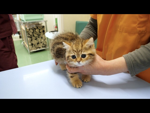 Cute kitten who cries out in fear at its first visit to the hospital...