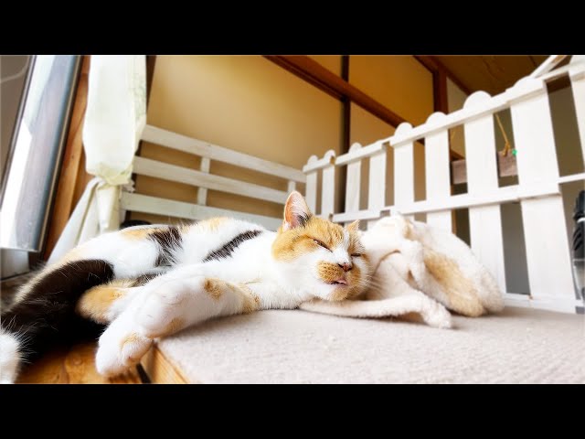 ムニャムニャしてる三毛猫まりもを10分間眺めるだけの動画【早送り無し】