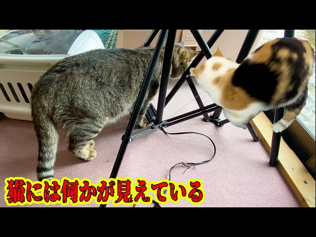 自分の尻尾を追う猫と、見えない何かを追う猫!!