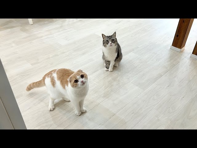 帰ってきたと思ったら忘れ物を取りに戻ってきただけだったときの猫たちの反応が可愛すぎました…